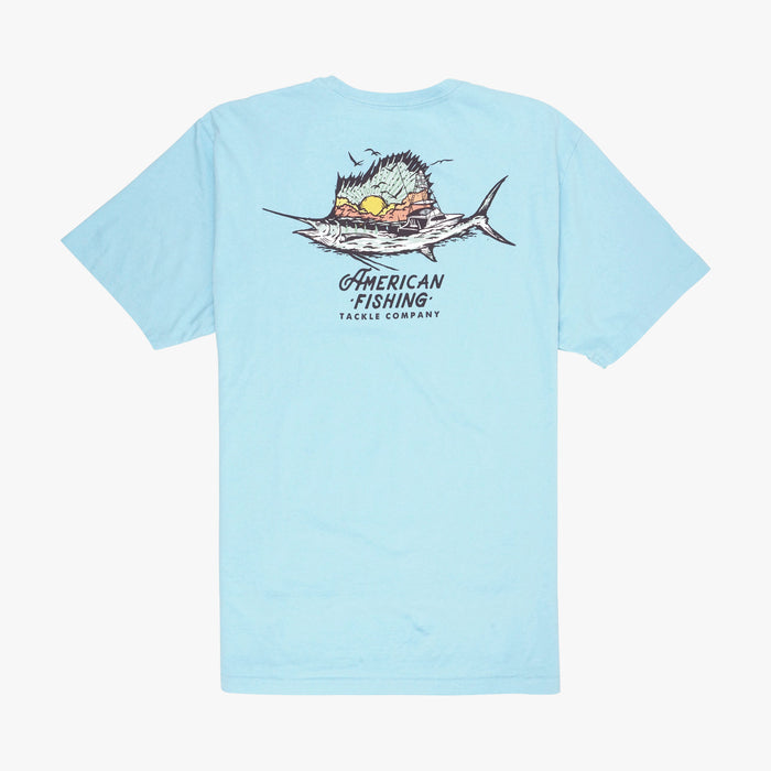 It takes a team to land a trophy-worthy catch. The AFTCO team is committed to creating high-quality gear to protect you from the elements so you can catch any fish in any water. The Teamwork fishing t-shirt features three anglers holding up their prized marlin after a day on the water. Teamwork is a durable and breathable heather t-shirt made with a cotton/poly blend.