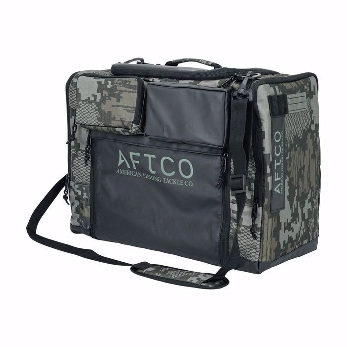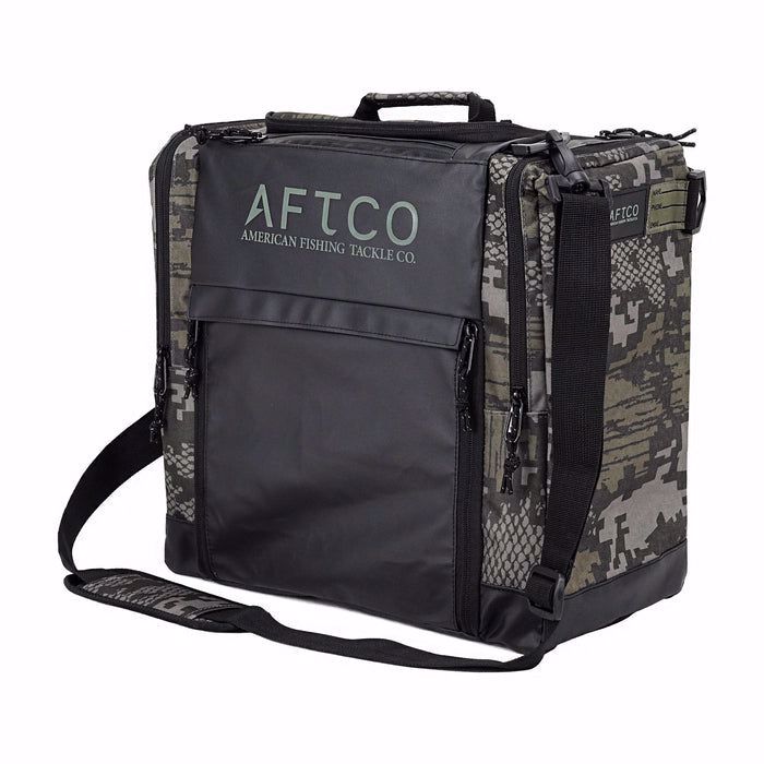 The Tackle Bag was built for all types of fishermen and is available in 3 sizes: 3500, 3600, and 3700. Each size variation represents the size of tackle tray boxes that were designed to fit in the main storage compartment of the tackle bag. Each bag has shelving to store 4 tackle tray boxes in the main compartment. There is also a side pocket is also large enough to hold an additional tackle tray. AFTCO fishing tackle bags are made of a 600D recycled polyester with Nylon Zippers and a seam-sealed Tarpaulin base which helps keep water out when sitting on the deck of a boat or wet surface. The Tackle Bag has a top handle, adjustable shoulder strap, and additional storage compartments to stow additional gear and tackle.