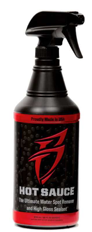 Bling Sauce’s #1 selling product, Hot Sauce, is a spray detailer on steroids. The unique spray-on, wipe-off formula has the strength to cut through hard water spots WITHOUT stripping your wax. Hot Sauce contains sealants to help maintain your wax coat while leaving a streak-free, show quality shine.