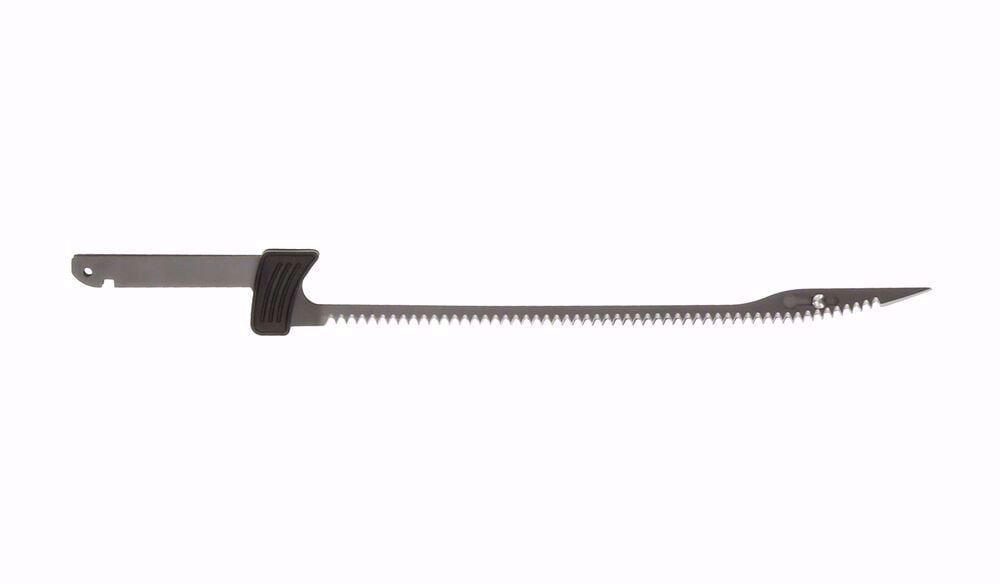 This E-FLEX Blade fits both our 110V Electric Fillet Knife and Cordless Lithium Ion Electric Fillet Knife. It's made of a High Carbon Stainless Steel and chemically bonded with a ti-nitride coating to be extremely corrosion resistant. The 7" blade serrated edge and apposing bidirectional blades make filleting medium to large size fish effortlessly.