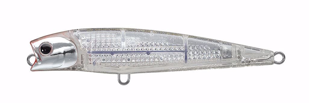 Get ready to add a deadly new weapon to your tackle box - the ultimate hybrid pencil-popper style bait. Designed for anglers who live for the heart-pounding, adrenaline-fueled thrill of topwater predation. The Salt Pencil 110F introduces anglers to more than just an easy dog-walking action, the open mouth and gill produce even more panicked movement for predators to key in on as it splashes and gurgles on the water’s surface. Featuring Daiwa’s vibrant Laser Impact design, the unique structures within the durable ABS plastic cause light to reflect in all directions captivating fish nearby and drawing fish from afar. Do not be wary of larger or toothier fish, the Salt Pencil features a thickened body wall and 1.2mm wire-through harness, allowing anglers to throw this bait for all manner of inshore gamefish. At .65 oz rigged and 110mm length, the Salt Pencil has the weight for distance casting and ideal body shape for flight stability and accuracy.