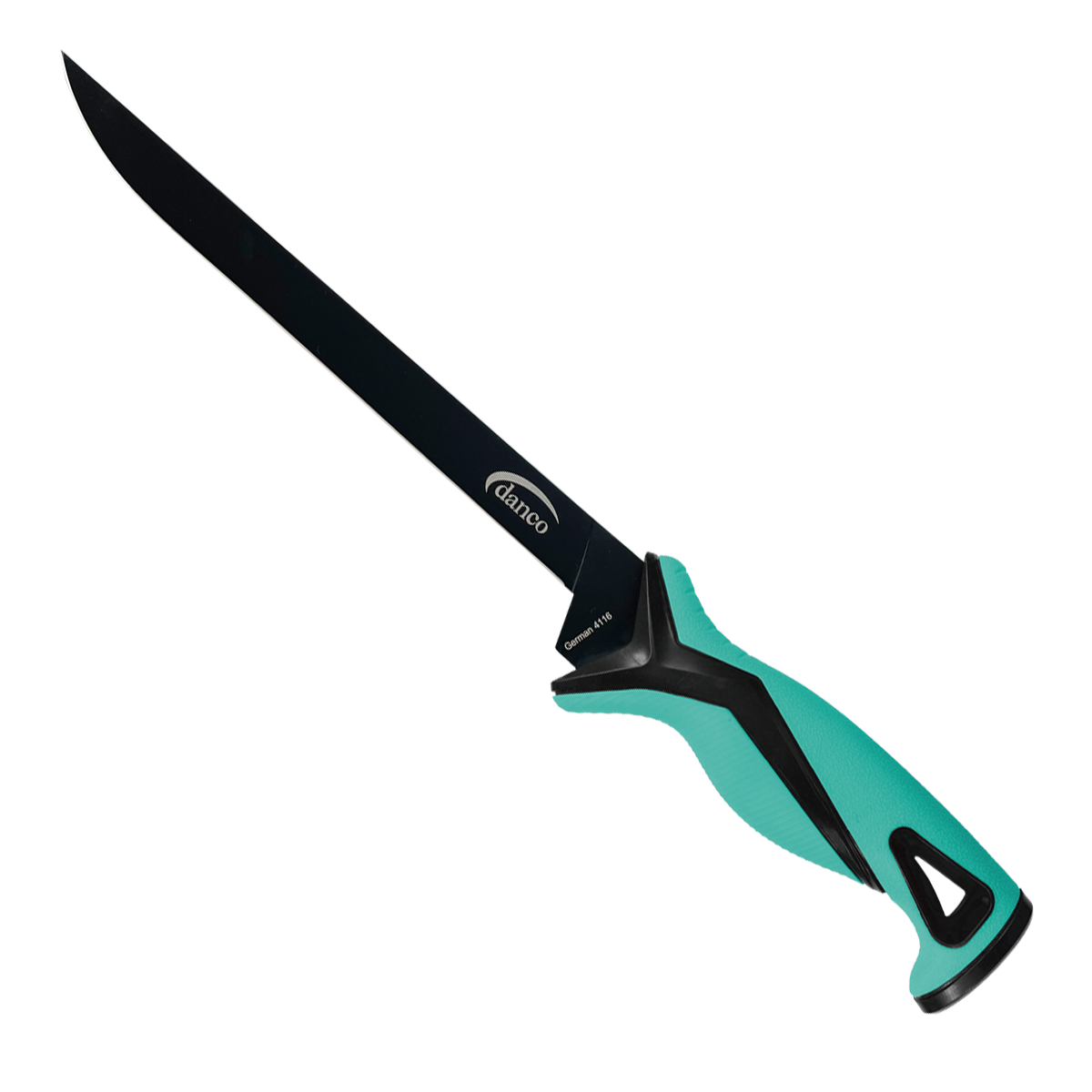The 5" Pro Series Fillet Knife features a high-quality, full tang, German Stainless-Steel blade coated with Dupont Teflon for easy cleaning and excellent corrosion resistance. The Pro Series Fillet Knife also features an ergonomic and textured dual molded grip for comfort and slip resistance. Included is a molded, nylon sheath with a belt loop. This knife is also a great option for a bait knife, camping knife and a hunting knife!