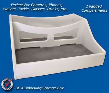 The BL-2 has additional storage for items like cell phones, glasses, sun screen, etc. Four large suction cups are included for horizontal mounting applications or screw mount vertically or horizontally. Measures 10 long, 5" wide, and 6" tall. Lifetime Warranty.