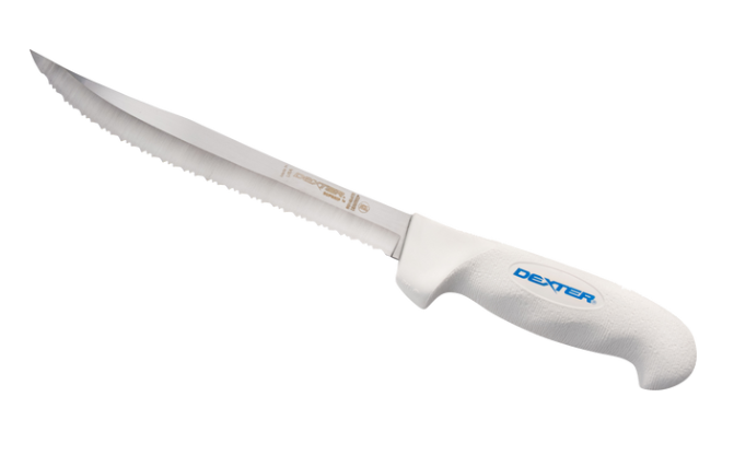 Legendary Tiger Edge scalloped goes through fresh and frozen bait, scales and can fillet a fish with ease. It’s a great all-around knife for bait, cutting cartilage and help processing your fish. It features our SOFGRIP™ handle that is soft to the grip and provides great control along with slip resistance. It features our proprietary high carbon, high alloy, stain free DEXSTEEL™. This knife is NSF certified and is made in the U.S.A.