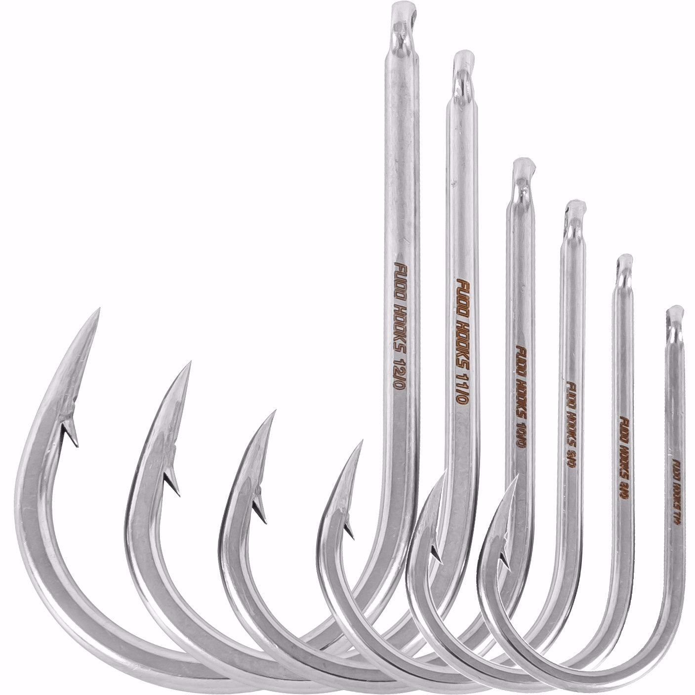 FUDO Super Ocean "Hays" Aida Hooks are the culmination of real-world feedback and desire to offer big game hooks that anglers will utilize day in and day out. Working closely with the likes of notable captain/lure crafter Andy Moyes and others, FUDO is pleased to offer this versatile hook to anglers around the world. This model hook is the perfect blend between our Super Ocean "Grander" Curved and Super Ocean "Hays" Open models. While some anglers swear by it, some prefer less bend than the "Grander" Curved, while some prefer more hook tip in than the "Hays" Open, so we positioned the hook point precisely in between, or "Aida" in Japanese. As part of the Super Ocean series, the "Hays" Aida Needle Eye Hooks are built extra heavy to withstand long, drawn out battles with large gamefish. The needle eye configuration is a fantastic choice when preparing hook sets with wire.