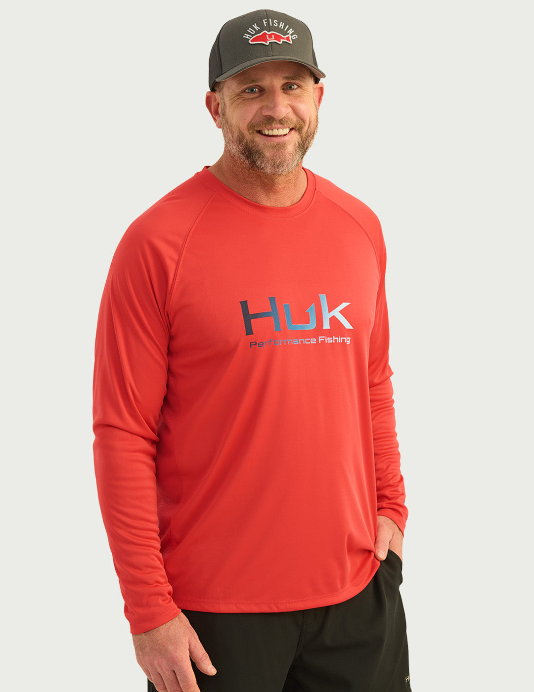 Gather your gear for the fishing trip with the Huk Men's Vented Pursuit Long Sleeve Graphic T-shirt. The polyester material provides a comfortable feel, while the graphic design offers a stylish look.