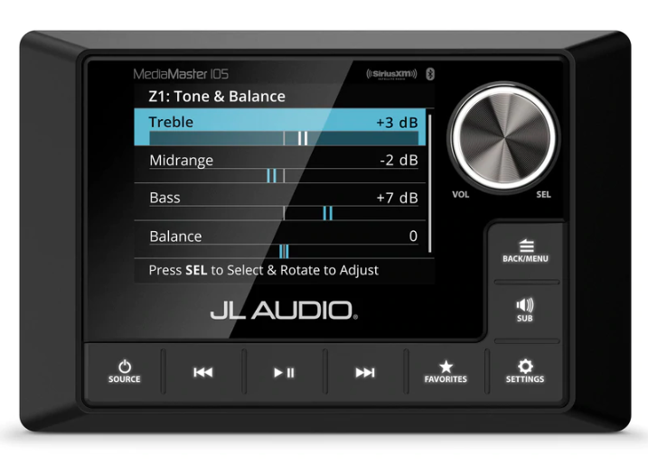 Enjoy great audio wherever your adventures might take you, with the MediaMaster® 105, a Premium Source Unit designed to withstand anything Mother Nature can dish out. This full-featured source unit delivers top-flight sound performance and advanced audio features specifically designed for marine and powersports applications. Its rugged, weatherproof (IP67 rated) chassis houses an ultra-bright, 3.5-inch full-color LCD display, with separate Day/Night lighting themes for outstanding visibility, even in bright sunshine. When in motion, you will also appreciate the clean user interface with big text and large backlit controls.