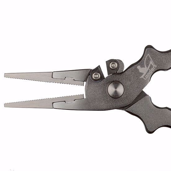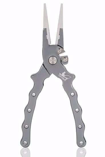 Landers 6.5" Fishing Pliers are a must-have for any inshore or freshwater angler. This lightweight, easy-to-handle tool makes lure-rigging and hook removing a breeze, and the anodized Aluminum body, 316 Stainless Steel jaws, and replaceable Tungsten Carbide cutters are sure to hold up in even the harshest conditions. A sheath and basic lanyard are included with each set and now you can choose between a nylon sheath and a rubberized sheath with rotating belt clip.