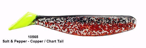 Designed to attract trout in saltwater, the Hogie Fishing Lures 4" Major Minnow Soft Plastic Swim Baits 6-Pack feature minnow designs with painted tails. These swim baits are made of plastic for durability and are 4" long.