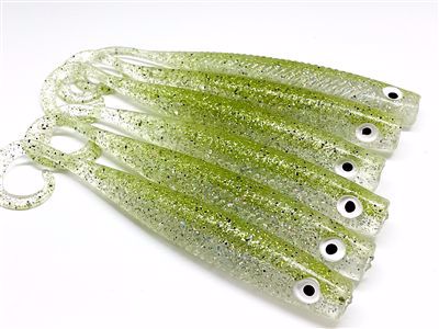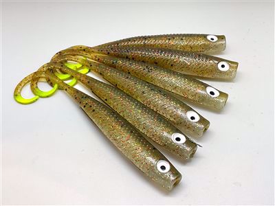 THE TROUT TICKLR CROAKER MAGIC - qty -6 Designed to perfectly mimic a sand eel. This is a fantastic search and finesse lure. Perfectly balanced action combined with EXTREME DURABILITY. Lure has a universal hook slot for 3/0 - 5/0 jig heads or weedless hooks. Excellent Summertime color when the grass is high,