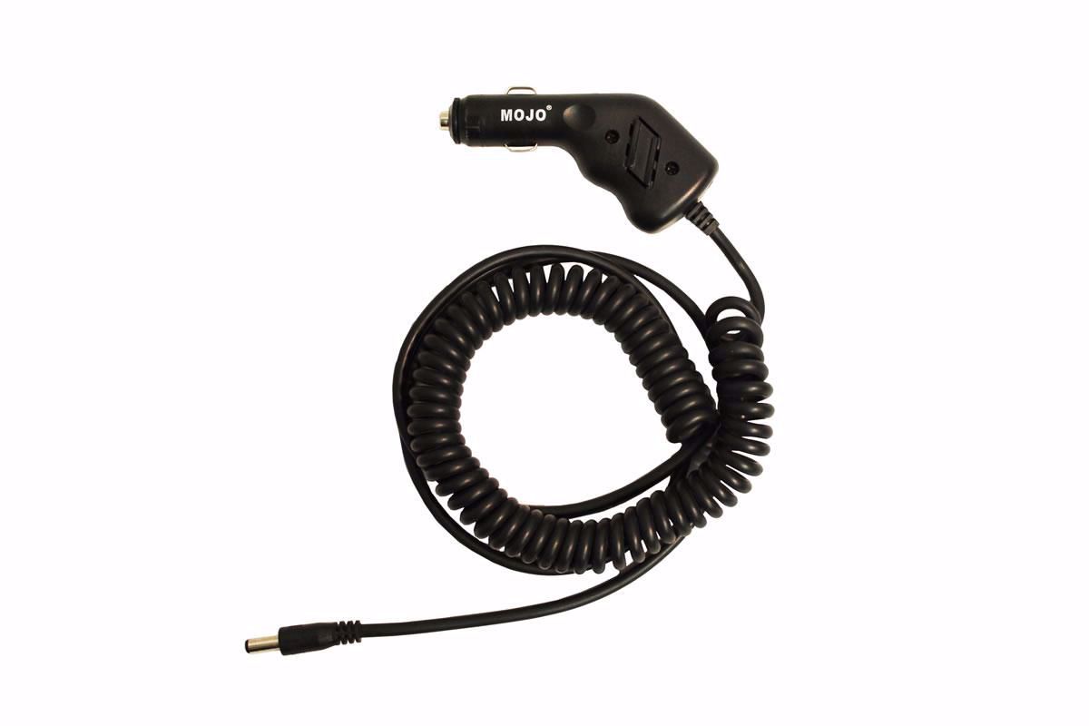 Heavy-duty 12-volt DC car charger utilizing cigarette lighter for power. Made for charging rechargeable AA batteries (never try to charge non-rechargeable batteries) in the MOJO DOUBLE TROUBLE CALLING SYSTEM and other devices that have a 3.5mm charging port and use 12-volt rechargeable batteries. AA battery car charger includes 12 feet of chord, approximately ½ coiled to provide 6 feet for easy storage and portability. Great for charging on the go or in remote places with no electricity and for keeping your rechargeable batteries up during long hunts (change between stands).