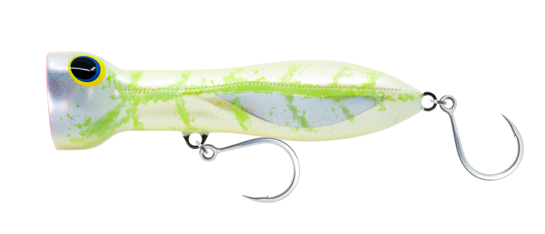 The CHUG NORRIS 6” popper is super easy to pop, it hangs in the water and will not ‘pull out’ when popped. This popper is all about being easy to use, and it does not require much effort to get a big pop due to the unique body shape and hydrodynamic design. It can also be worked with subtle small pops and twitched across the surface. Whatever application, you will find the 6” Chug Norris popper one of the easiest and most effective poppers available. Featuring a machine-stamped stainless-steel plate and diamond armour internal mesh system, it is one of the toughest lures available, and is up to any challenge. Perfect for large Bluefin Tuna, Yellowfin Tuna, Cubera Snapper and Roosterfish. Designed and tested in Australia by the Nomad Sportfishing Team, Nomad Design lures are not only super tough and durable, but also feature unique colours and most importantly unique and highly effective shapes and actions. Each lure has been designed for a specific purpose and has been balanced and tested to work perfectly with the chosen hooks. Every Nomad Design lure has been crafted by decades of experience on the water to be tougher, last longer and to catch big fish.