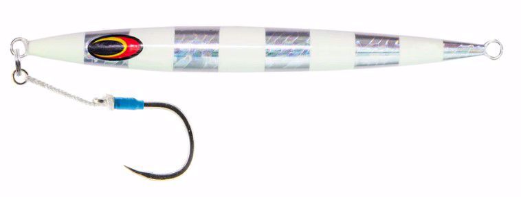 The STREAKER Jig is a high pitch jig designed to be worked faster. It is perfect for Yellowfin, Bluefin, Amberjack and a variety of other species. It has gained huge popularity in the 80-120g sizes in the NE Coast area when trying to mimic a Sand Eel when jigging Striped Bass and Bluefin Tuna. The sizes available mean you can fish this in shallow water for Grouper and Snapper, through to deep water for Yellowtail, Amberjacks and Tuna. The jigs come fitted with super strong and super sharp BKK jig assist hooks matched perfectly to the size of the jig and are ready to fish straight out of the packet.