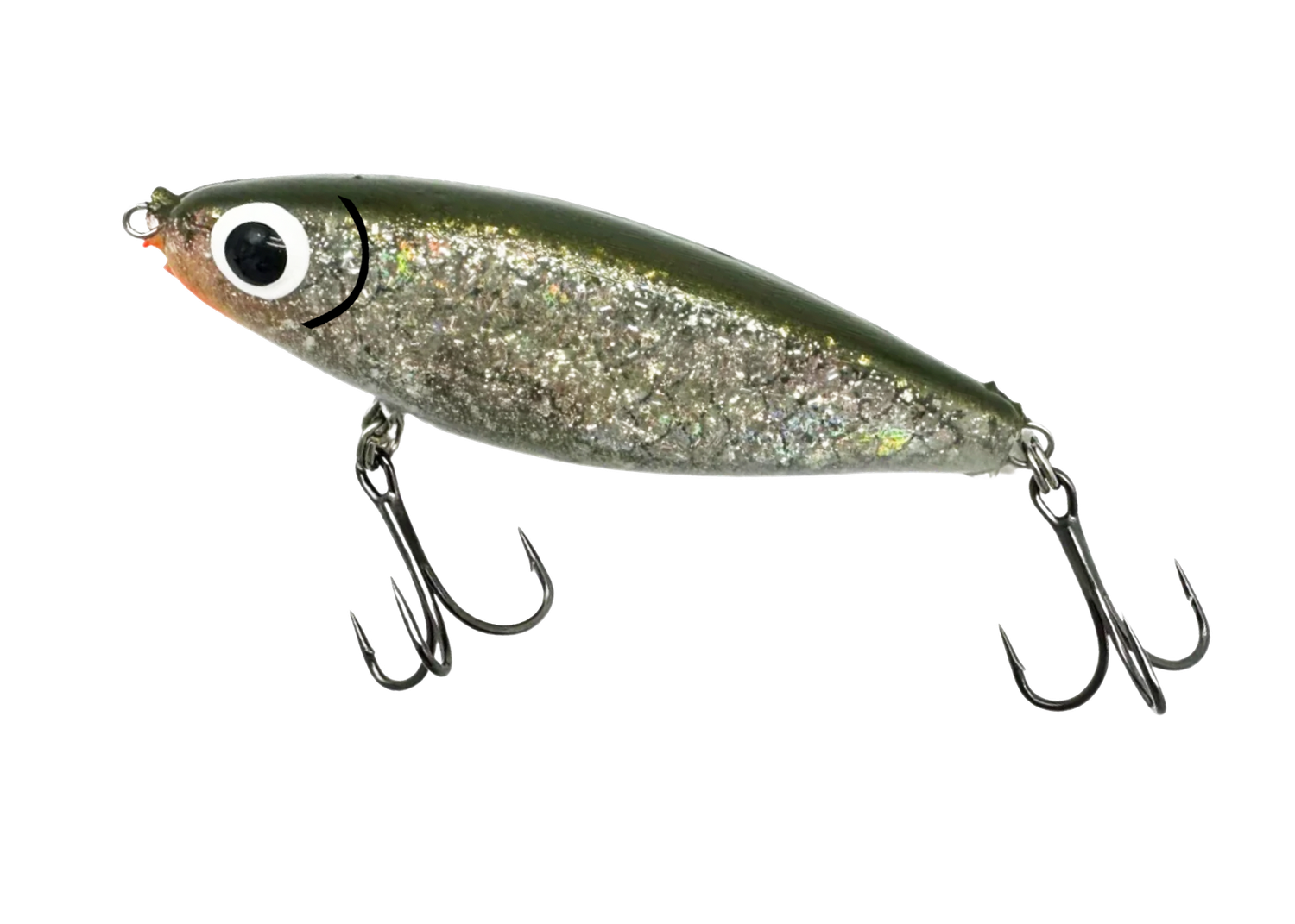 The Shallow Diver is weighted differently, allowing the lure to walk the dog below the water's surface, or dart back and forth with quick twitches. Designed for shallow water, this lure perfectly imitates dying or lively baitfish, with several retrieval possibilities. Work it fast, slow, it will stay in the upper water column, perfect for probing shallow mullet schools and any structure you want.