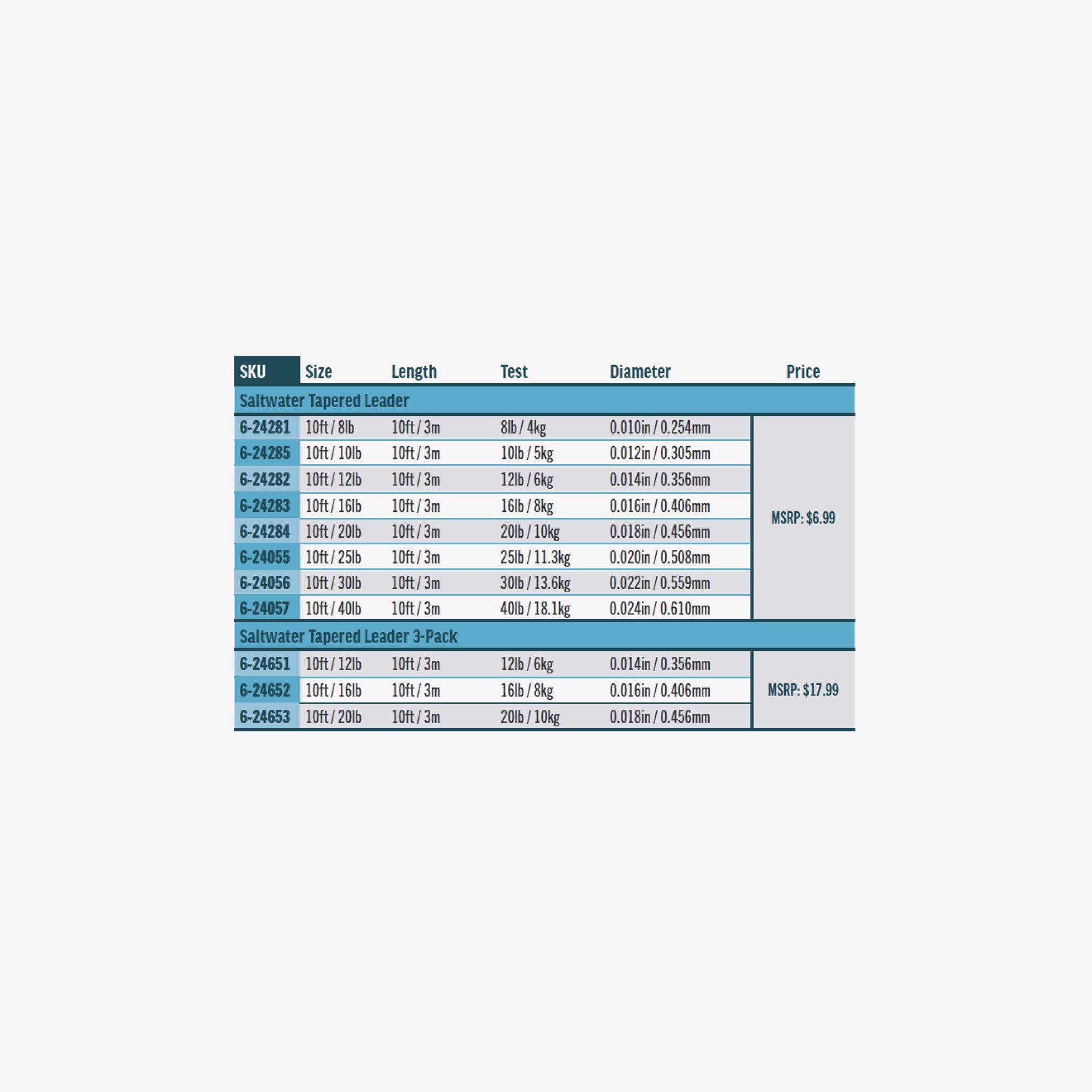 A tough, abrasion resistant, general purpose, knotless tapered saltwater leader.