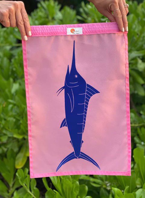 Our NEW Pink Marlin Flags are here for the lady anglers! Fly these high and proud on your boat to share your catch of the day. Made using a Velcro attachment that makes for easy application and removal of the flag. It can attach to any line or rigger and withstand up to 100 knot winds. This material is different from our original flags, and made using nylon. Our Sundot Marine Flags can also be used to decorate your restaurant, home, bar area, children’s bedroom or party. Made in Hawai'I, USA.