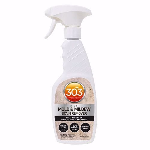 The 303 Mold & Mildew cleaner plus blocker is designed to work on all water-safe surfaces and leaves behind a fresh scent. This biodegradable cleaner contains no bleach and is safe for vinyl and fabrics. The cleaner quickly removes old mold and mildew stains on contact while the blocker helps prevent the stains from re-occuring.