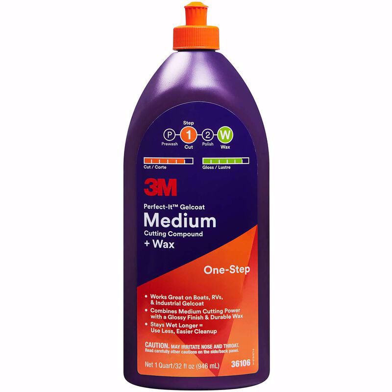 Our 3M™ Perfect-It™ Gelcoat Light Cutting Polish + Wax is formulated to quickly remove light to medium oxidation, light scratches, swirl marks and other minor defects from gelcoat. This polish removes scratches of P1500 or finer, and leaves a polished wax finish without swirls even in difficult dark-colored gelcoats. Long An Excellent Gelcoat Finish, Fast For a truly professional gelcoat finish, our Perfect-it™ Gelcoat Light Cutting Polish + Wax combines polish and protection in one step— its premium chemical and mineral formula quickly removes light to medium oxidation, swirl marks and scratches of P1500 or finer. This gelcoat polish leaves a smooth, high gloss wax finish even on dark-colored gelcoats, and it protects the gelcoat surface against weathering. The polish, which is suitable for environments not sensitive to silicone, has a long wet time, allowing you to use it longer before you need new material. You use less product even in warmer climates, yet it handles well and does not clog on the buffing pad. The formula also includes a wax coating which helps protect the gelcoat surface from the elements and reduces the need for further waxing. The combined benefits of a polish and waxes in one product mean you spend more time relaxing on your boat out on the water and less time detailing it. Enjoyment is what having a boat is all about.