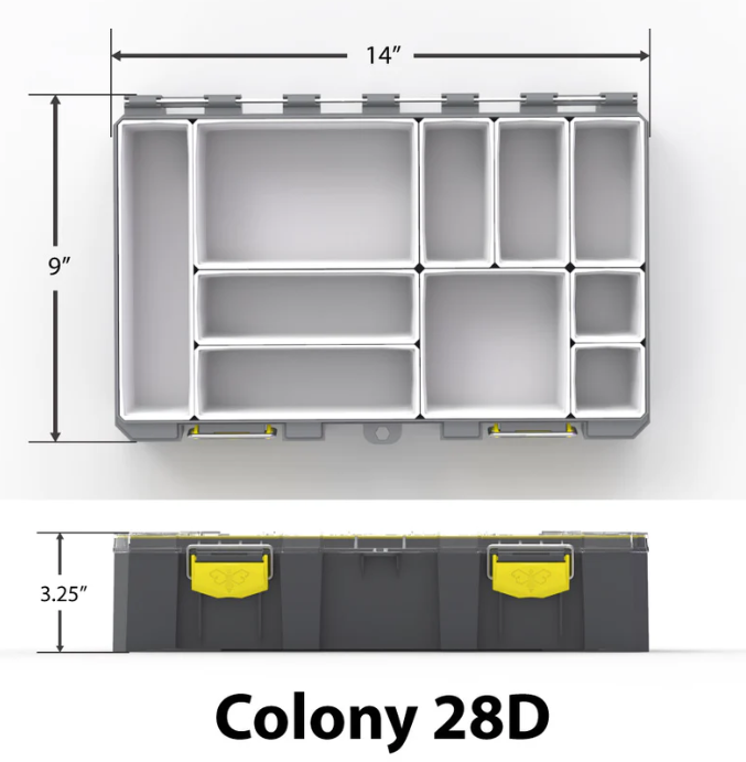 Available in a 3.25” Deep option, the BUZBE Colony 28D Modular Tackle Box uses new innovative technology that resets the standard of what tackle storage can do. Extremely familiar yet totally redesigned. Designed to be customized to one’s needs, protect tackle, and be durable enough to last for years of fishing. Fishermen are different and unique, why shouldn’t their tackle box be too?