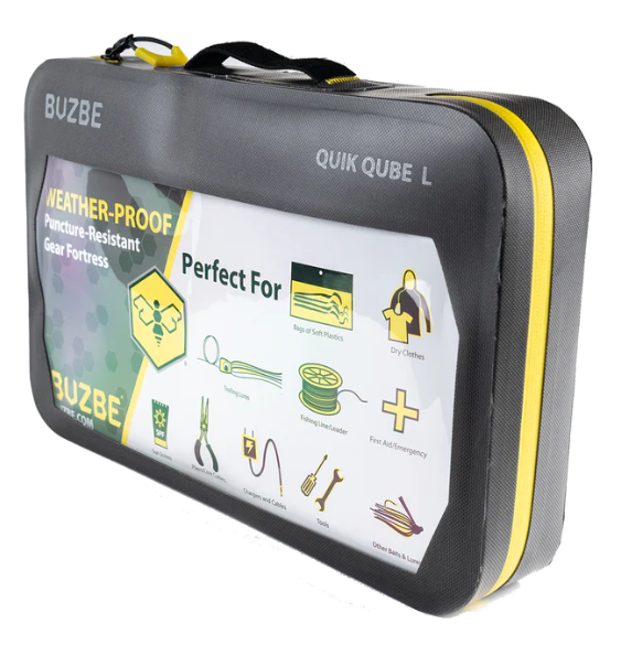 BUZBE has redesigned the standard hard tackle box, creating a soft bag alternative. The BUZBE Quik Qube™ is an over engineered, weather-proof, puncture-resistant, gear fortress. With a transparent window, you are able to quickly identify the contents for ultimate organization and saving time. The Quik Qubes™ are great for bulk storage, bags of soft plastics, hard to store clamshell packs of soft plastics, extra line and leader, and larger lures. The Quik Qubes™ also double as the perfect water resistant packing cubes, safely storing your rain gear, extra clothes, or toiletries on your next fishing trip. Available in four different sizes.