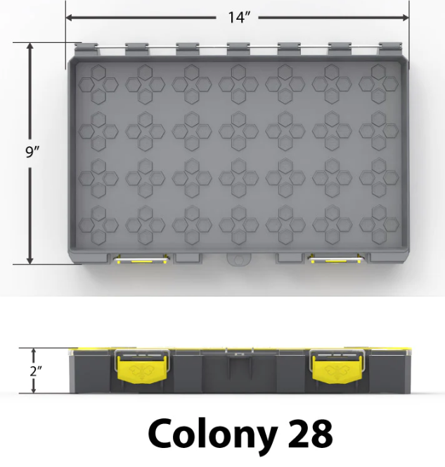 This Colony 28 is preconfigured in a popular layout used to store Terminal Tackle. The BUZBE Colony 28 Modular Tackle Box uses new innovative technology that resets the standard of what tackle storage can do. Extremely familiar yet totally redesigned. Designed to be customized to one’s needs, protect tackle, and be durable enough to last for years of fishing. Fishermen are different and unique, why shouldn’t their Terminal Tackle Box be too?