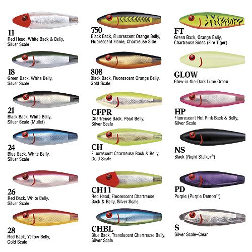 These legends have been producing trophy fish for decades. Their life-like appearance, "built-in" flash and 3-D fiery red eyes are irresistible to all gamefish. The 51MR, 52M and 52MR sink at a rate of one foot per second. We recommend using the 51MR series when fishing shallows (three feet or less) because the line attachment is in the lure's nose.