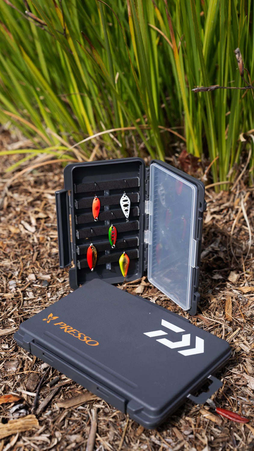 The Daiwa Presso Freeboard Cases introduce anglers to a critical piece of protective tackle organization for small lures, spoons, and jigs. Designed to fit neatly in tackle backpacks, sling-bags, and hip bags, these hard-shell style cases easily slide in and out of your preferred carrying bag while providing protection to the paints and finishes of the lures held within.