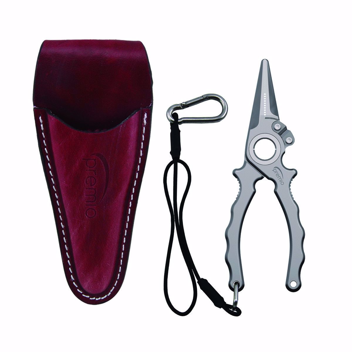 The absolute next level in fishing tools! We took a quantum leap forward and made a pair of extremely high-quality pliers that every angler would not only want but most importantly, be able to afford. Our premio level titanium pliers are just that, made of 100% machined titanium with a sleek matte finish and fitted with our exclusive Super Halo Hinge. These pliers also feature replaceable Cobalt-Titanium side cutters which are suitable for braided line, fluorocarbon, monofilament and even light wire. The entire line of premio pliers comes in very exclusive boxed packaging and they feature a 304 stainless-steel D ring, an elastic cord (non-coiled) lanyard and a belt-loop sheath made from the highest-grade leather. These pliers are extremely lightweight, so light than you will barely notice them on your hip for your lifetime of fishing excursions. All of the features above, backed with a full Lifetime Warranty makes these, "probably the best fishing pliers in the world."