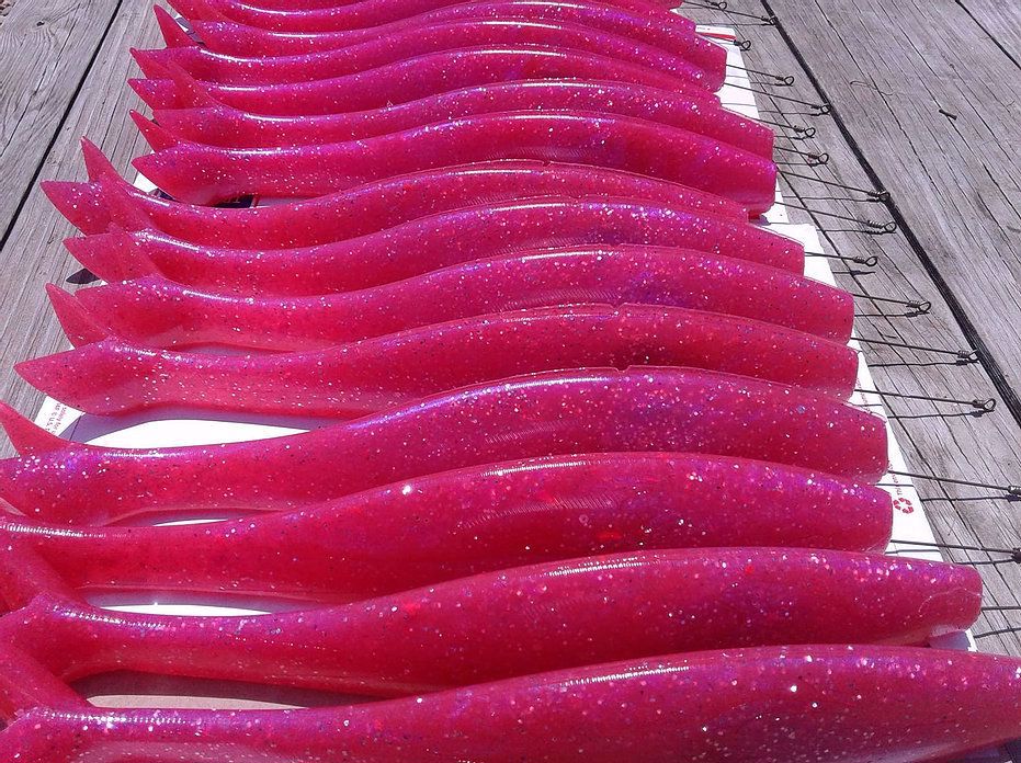 These Dredge Shads have a thicker tail connection, and this paired with the strong formula used to make these shads gives you a better dredge shad that will hold up longer and will not lose tails every day. They come with the tails already V notched, and they are also internally weighted to help them run true. We ran the #15 wire through the internal lead and out the nose making it just long enough to add a dredge head if you desire, but it is still short enough to run it by itself.