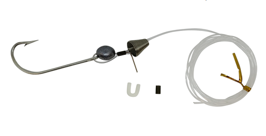 Save time and bring more fish to the boat with our ballyhoo rig. This pre-rigged ballyhoo is super handy to have on the boat, allowing you to add ballyhoo bait to any lure in your tackle box. Like all Fish Razr products, this ballyhoo trolling rig is made to our rigid quality standards and hand-rigged by professional anglers right here in the USA. The rig comes with a Mustad hook crimped onto 6 feet of premium monofilament leader with a lead chin weight with the head pin pre-installed. It also includes a thimble and an extra crimp. It comes in 7/0, 8/0, and 9/0 hook sizes. The 7/0 hook has a 100 lb leader, and the 8/0 and 9/0 hooks have 150 lb leaders. This ballyhoo rig lets you focus on fishing instead of rigging. Ballyhoo makes fantastic bait for targeting all sorts of gamefish, like marlin, tuna, dolphin, and wahoo, just to name a few. Whether you’re bringing your own ballyhoo or chumming as you go, this rig will lighten your workload without compromising your commitment to quality. We offer a wide range of tournament-grade tackle. Our ballyhoo rigs are a versatile option for offshore angling, but you don’t need to stop there. Browse all of our saltwater trolling lures to find everything you need to win your next tournament or simply have a more productive day at sea. Once you start using our ballyhoo rig, you’ll never bother rigging your own again. We ship fast and orders $99+ ship free. Get your pre-rigged ballyhoo rig at Fish Razr today.
