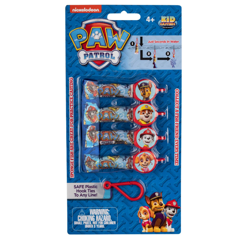 What better way to get your kid involved in fishing and practice casting than the Paw Patrol Bait Pack! The kit includes 4 sponge fish training lures that magically transform into different fish species within seconds of being in the water! Easily change out your favorite Paw Patrol characters with the included plastic safety hook! This makes the Paw Patrol Bait Pack a fun learning experience, and great way to improve their casting!