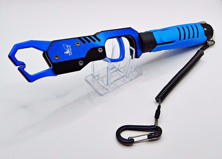Trigger Grips are anodized aluminum with stainless steel springs and fastners. It has a rubberized handle AND a 30lbs. scale under the handle. It also features curved and pionted jaws so when you pull the trigger it will get a better hold on the fish compared with similar products. Comes standard with a coated stainless stell lanyard. Great addition to our quality tool lineup!