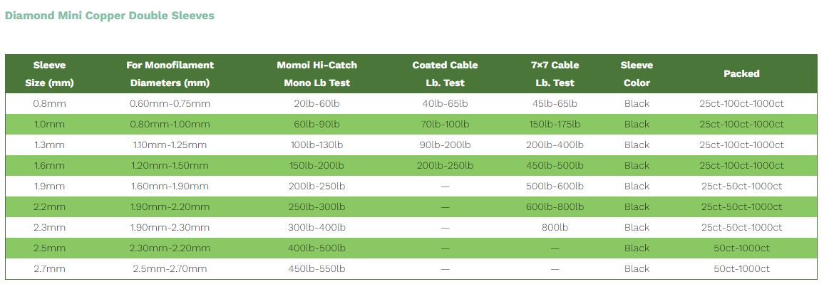 JINKAI Sleeves are made from a special aluminum alloy that is easy to crimp and resists electro-corrosion in saltwater. The soft metal and oval shape work together to provide a permanent crimp without compromising line strength. A wide variety of sizes coordinate for use with all lb. tests of JINKAI Line.