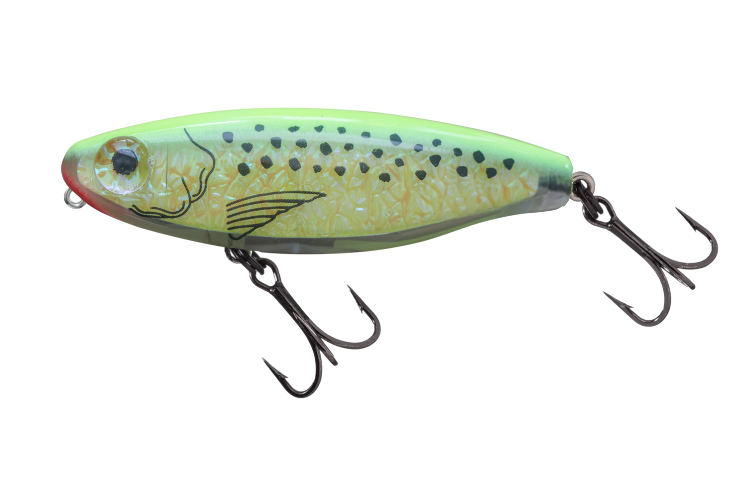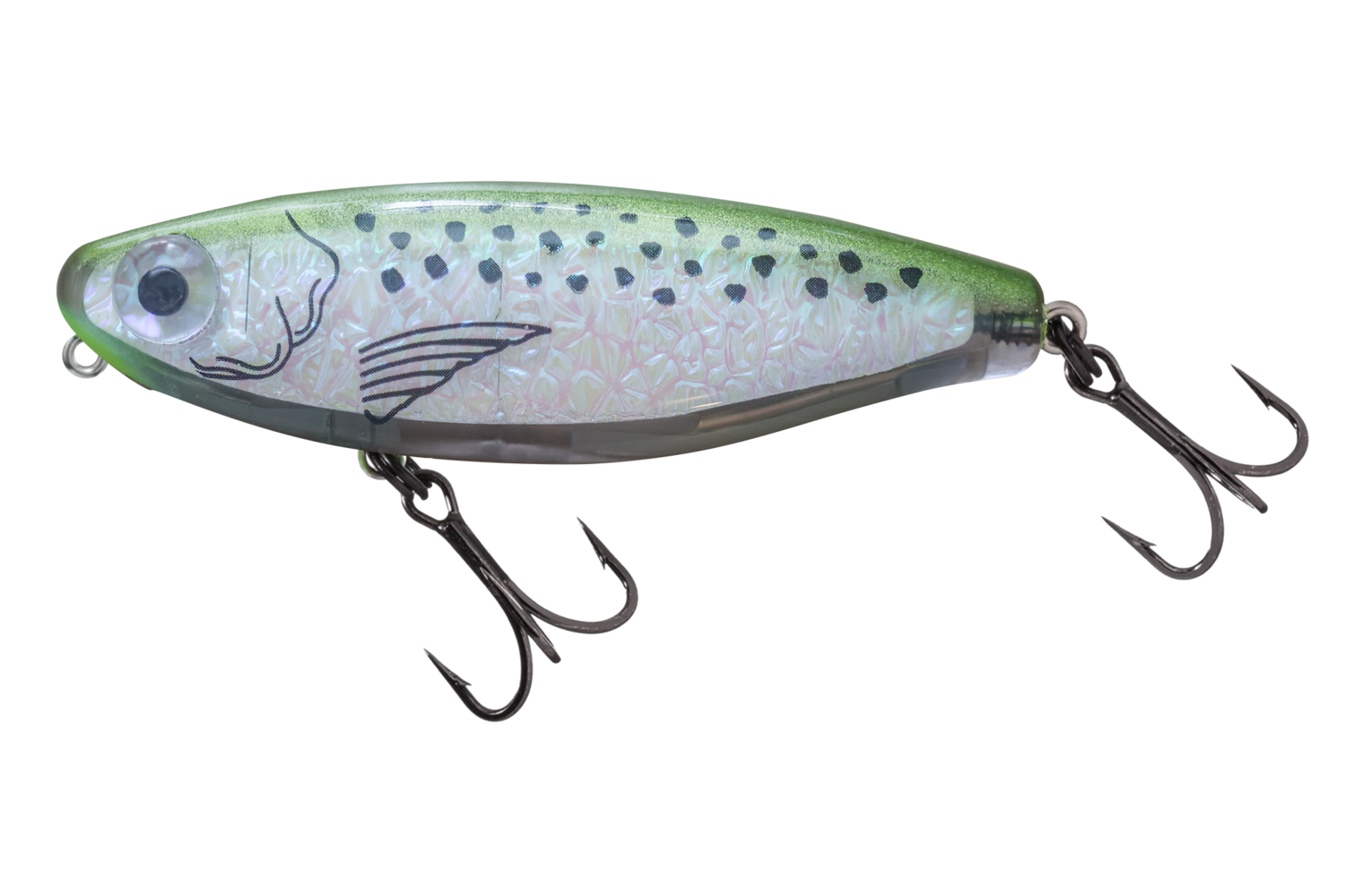 Our Brand New Surface walker, named after our mascot Duke, the family Airedale, this lure is sure to draw in massive topwater strikes. With the body of a shad, it is thin and walks great. Outfitted with super strong hooks and hardware. Available in it's own custom original colors.