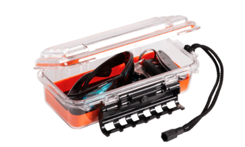 Plano's Guide Series™ waterproof cases are the best protection on the water. Cam-action latches and a Dri-Loc® O-ring seal provide an airtight, waterproof environment so your valuables can travel with you worry-free. Even if they go overboard, contents stay safe in one meter of water for up to 30 minutes. This 3500 size is great for cell phones and wallets.