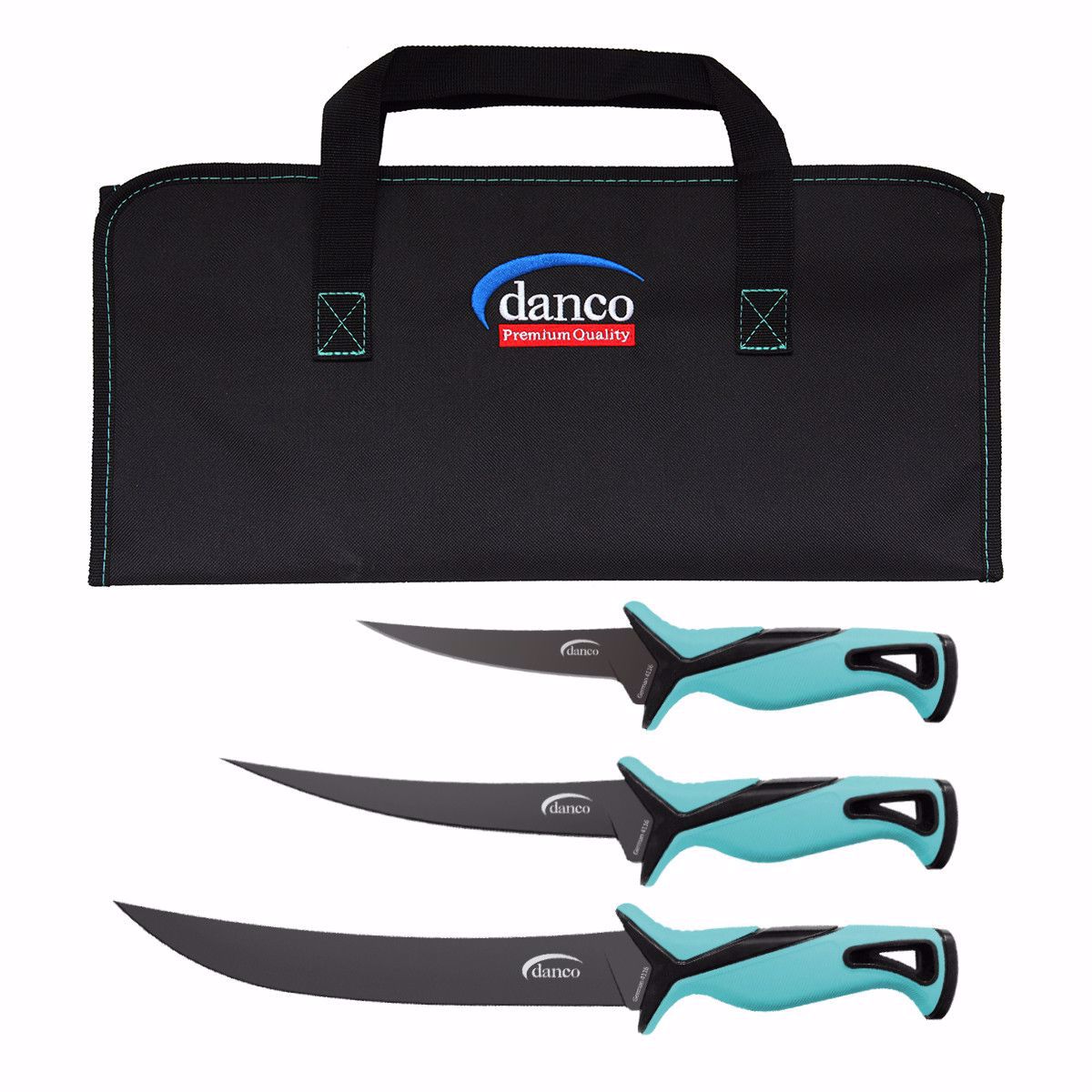 Each kit contains one 5" Flex, 7" Flex, and 9"Stout Pro Series Knives with a convenient roll up bag. Each knife features an ultra-sharp, full tang, 4116 German stainless-steel blade with a Dupont Teflon coating and an extremely comfortable over-sized, dual molded handle with texture for added slip resistance. This is the most popular product in our line of knives and is perfect for the angler who likes to stay ready for any fillet job! No job too big, no job too small, this roll up kit can do it all!