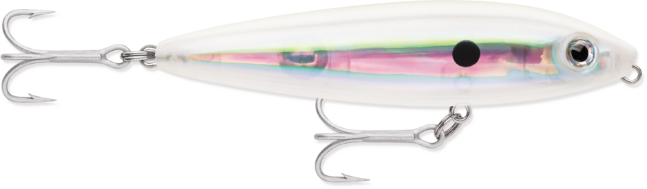 Toss it out. Pump. Reel. Pump. Reel. You're "Walking the Dog." Large internal rattles create a rhythmic side-to-side motion-and-sound combination that imitates swimming mullet or fleeing baitfish. The Saltwater Skitter Walks are equipped with VMC® Perma Steel® Hooks and rugged, saltwater hardware.