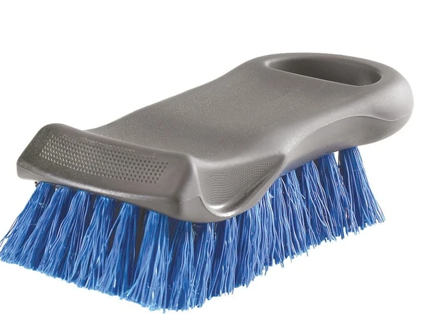 A powerful brush that fits in the palm of your hand! This small, stiff brush is perfect for cleaning your buffing pads or scrubbing stains off carpet.