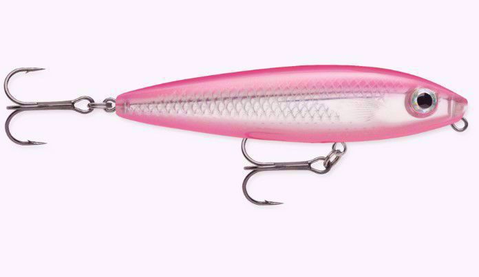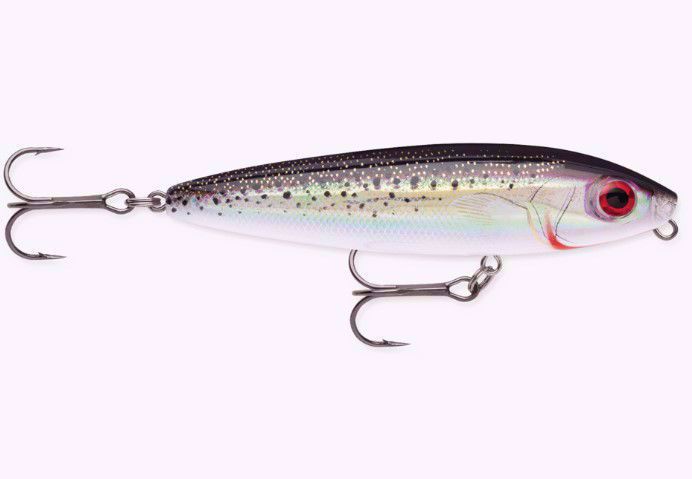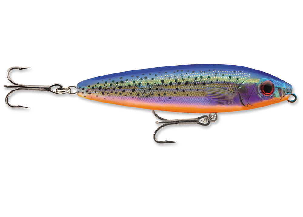 Toss it out. Pump. Reel. You're "Walking the Dog." Weighted tail keeps bait in the natural position even at rest. Large internal rattles create a rhythmic side-to-side motion-and-sound combination that imitates wounded or fleeing baitfish. All feature 3D holographic eyes and you can choose from appetizing painted or chrome color patterns. All are equipped with VMC® black nickel hooks.
