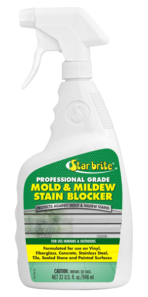 Star brite® Professional Grade Mold & Mildew Stain Blocker provides an invisible barrier to unsightly mold and mildew stains. It shields and protects fiberglass, vinyl, plastic, rubber, concrete, carpeting, rugs, fabric, stainless steel, tile, sealed stone and painted surfaces. Features Easy to use; just spray and allow to dry Ideal for protecting new or freshly-cleaned surfaces For indoor and outdoor surfaces; kitchen, laundry rooms, garages, vinyl siding, outdoor furniture, etc. Directions If surface has mildew stains, use Star brite® Mold & Mildew Stain Remover to clean the area before applying Mold & Mildew Stain Blocker. Spray onto surfaces to be treated, using a cloth or sponge to spread evenly to ensure uniform coverage. Wipe up any overspray and allow to air-dry. Reapply monthly or as often as needed to keep surface free of mildew stains. NOTE: Test for effect on color in an inconspicuous area before treating the entire area. If adverse effect is noted, do not continue use. Manufacturer’s liability is limited to the purchase price of this product.