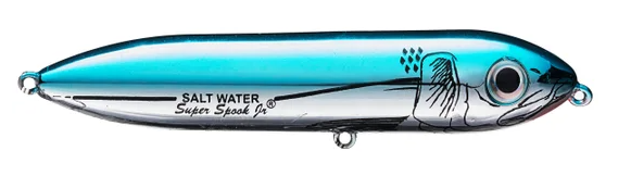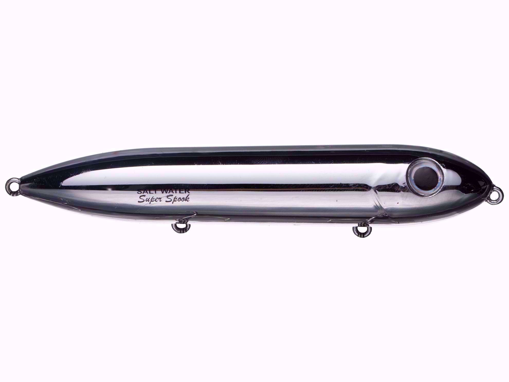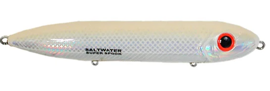Heddon Saltwater Super Spook topwater lure has a 5" body and boasts 3 super-sharp saltwater hooks and hardware. Perfect for serious saltwater fishing.
