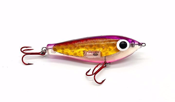 A favorite among wade fisherman. The Fat Boy features a wide-bodied profile and suspending action which cathes large fish. Fat Boy is weighted for long casts and features special vacuumed rattle which completes its effectiveness. Fat Boy Floater runs shallower that the Fat Boy and was designed by Paul Brown to fish "skinny" waters.